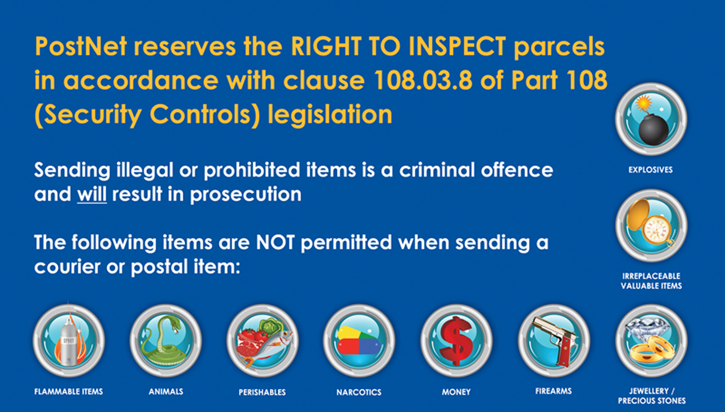 But there are also less obvious items that cannot be transported such as perfume, cash and jewellery. For a complete list of prohibited items please ask your local PostNet store.